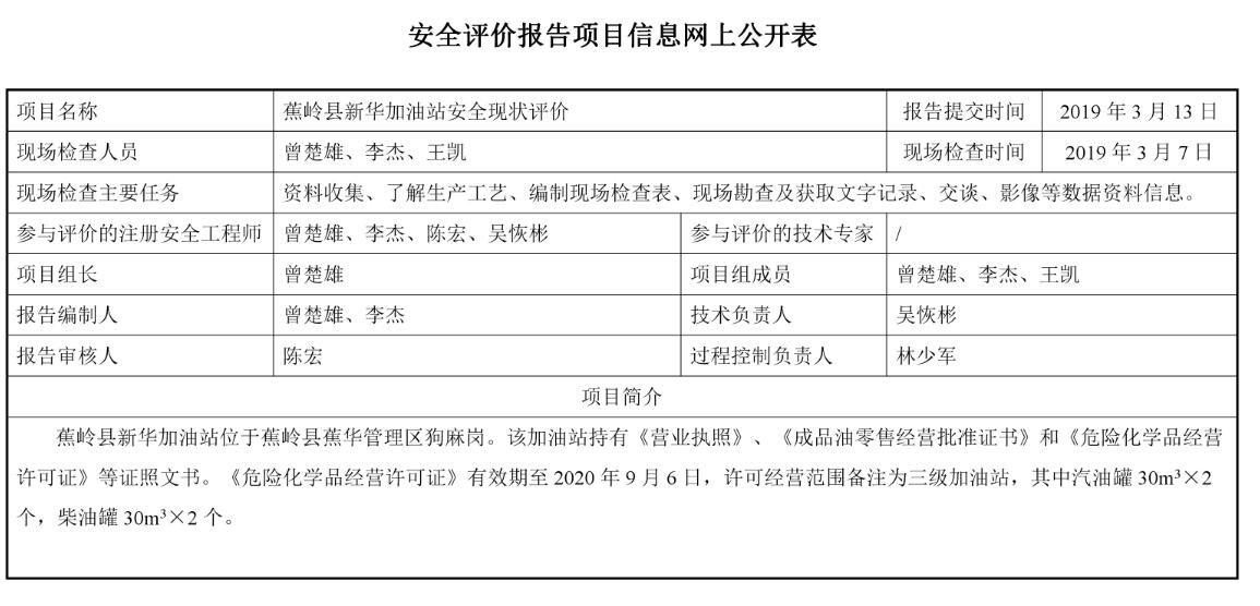 蕉岭县新华加油站安全现状评价