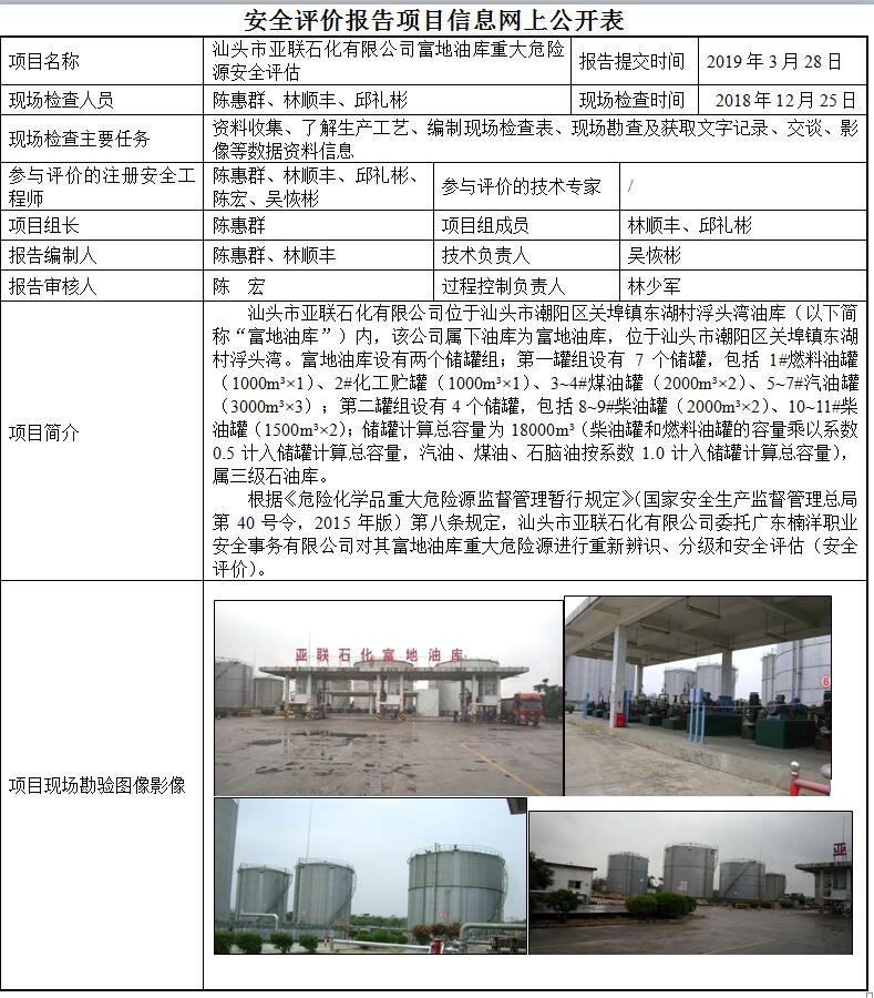 汕头市亚联石化有限公司富地油库重大危险源安全评估