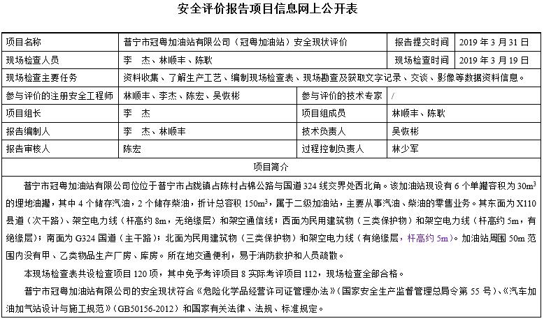 普宁市冠粤加油站有限公司(冠粤加油站)安全现状评价
