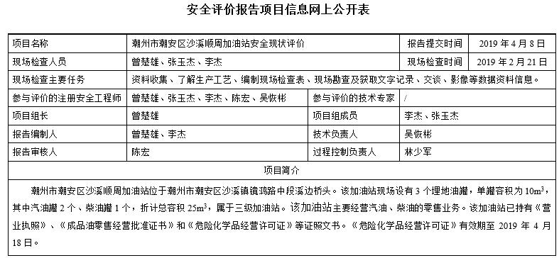 潮州市潮安区沙溪顺周加油站安全现状评价
