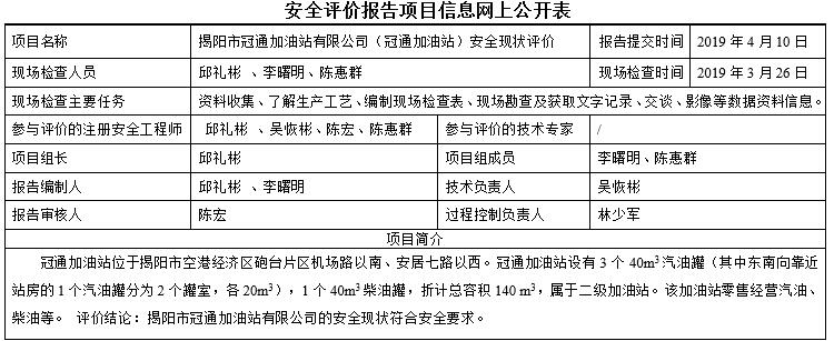 揭阳市冠通加油站有限公司(冠通加油站)安全现状评价