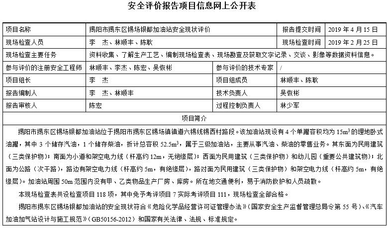 揭阳市揭东区锡场银都加油站安全现状评价