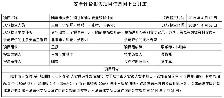 陆丰市大安供销社加油站安全现状评价