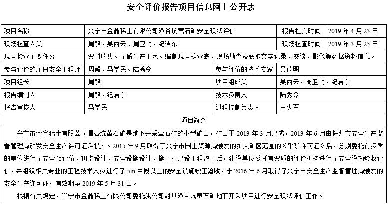兴宁市金鑫稀土有限公司潭谷坑萤石矿安全现状评价