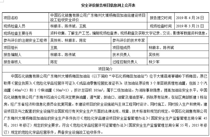 中国石化销售有限公司广东梅州大埔杨梅田加油站建设项目竣工验收安全评价