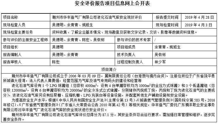 潮州市华丰造气厂有限公司液化石油气库安全现状评价