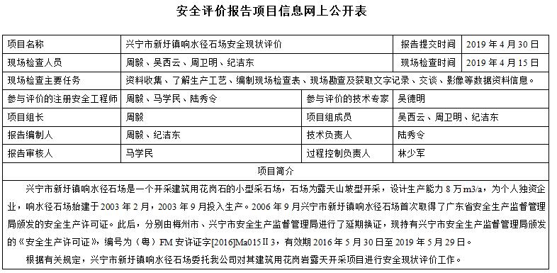 兴宁市新圩镇响水径石场安全现状评价