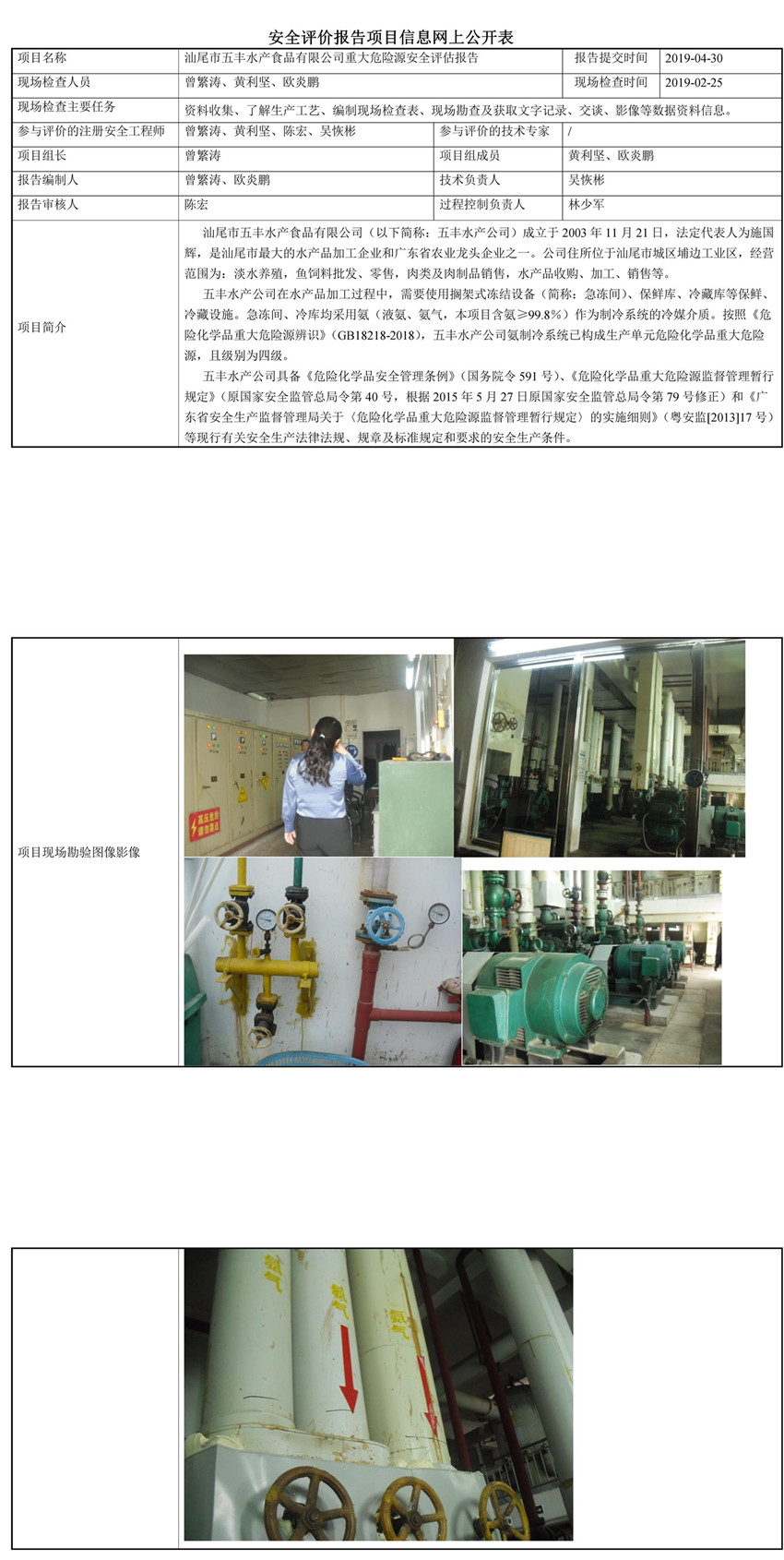 汕尾市五丰水产食品有限公司重大危险源安全评估