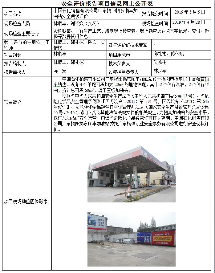 中国石化销售有限公司广东揭阳揭东顺丰加油站安全现状评价