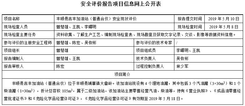 丰顺县吉丰加油站(普通合伙)安全现状评价