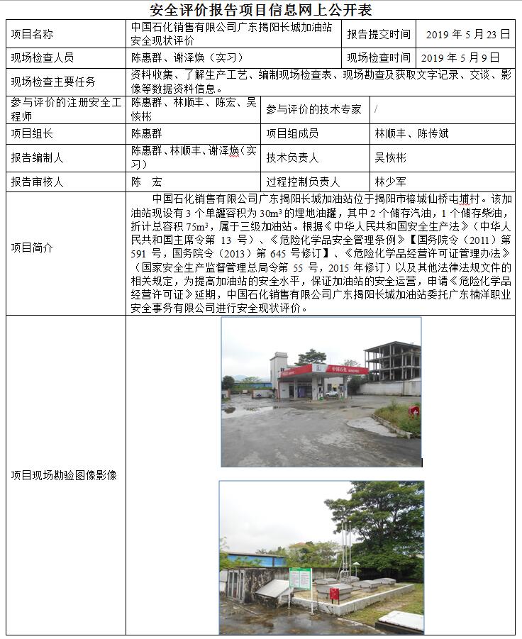 中国石化销售有限公司广东揭阳长城加油站安全现状评价