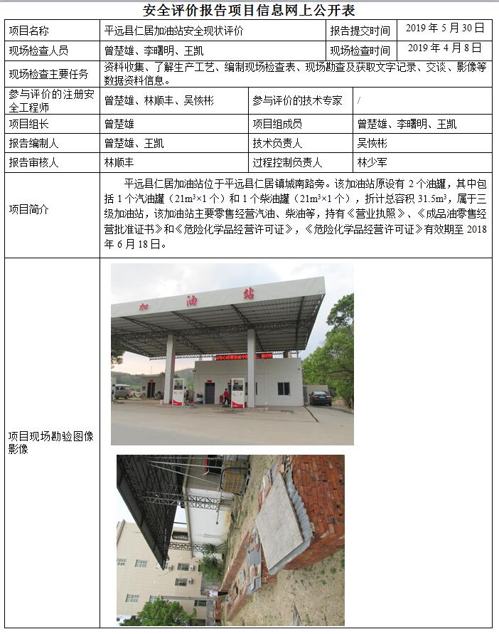 平远县仁居加油站安全现状评价