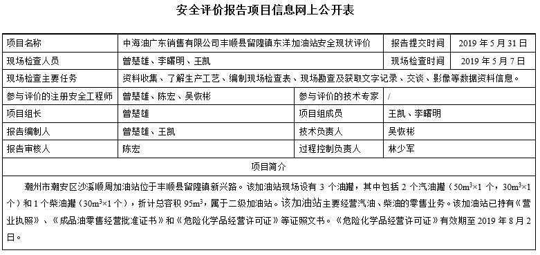 中海油广东销售有限公司丰顺县留隍镇东洋加油站安全现状评价