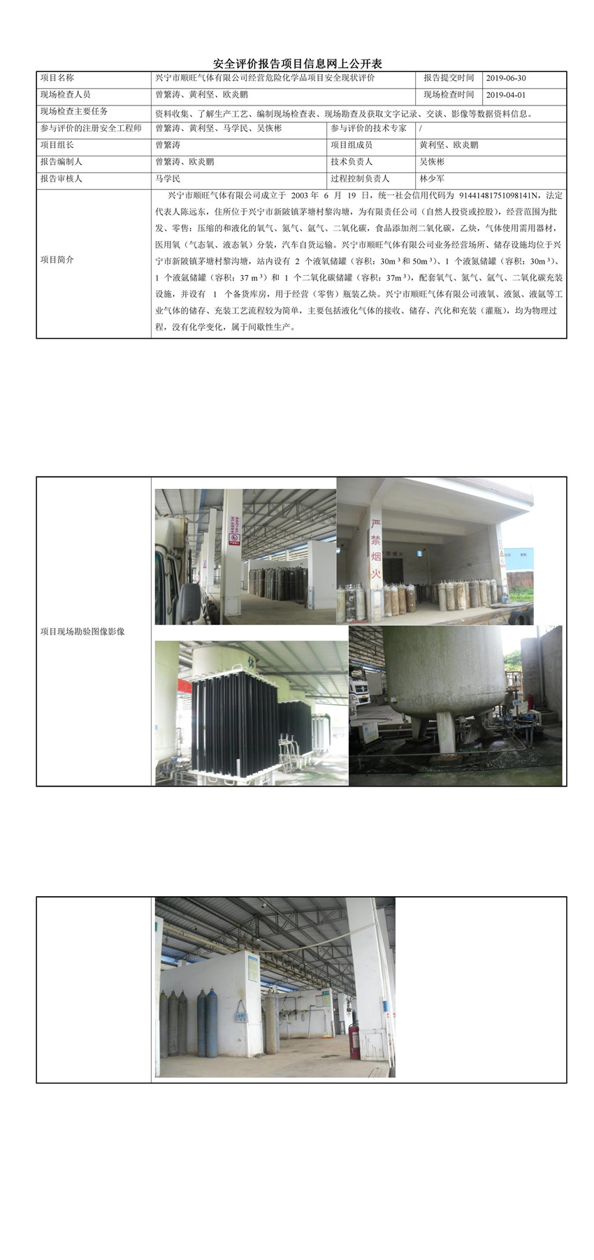 兴宁市顺旺气体有限公司经营危险化学品安全现状评价