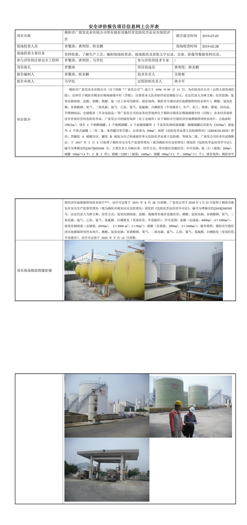 揭阳市广泰发实业有限公司带有储存设施经营危险化学品安全现状评价