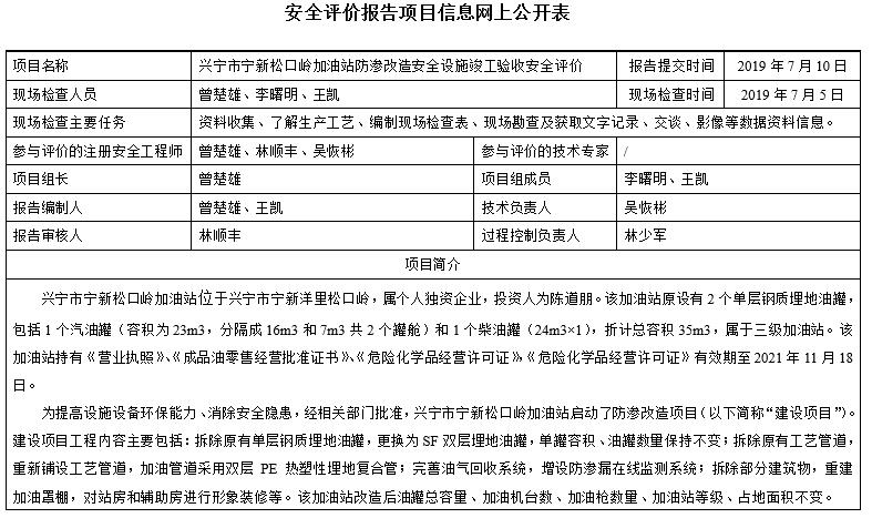 兴宁市宁新松口岭加油站防渗改造安全设施竣工验收安全评价