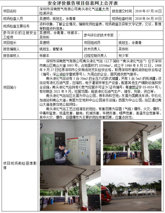 深圳市深南燃气有限公司南头液化气站重大危险源评估
