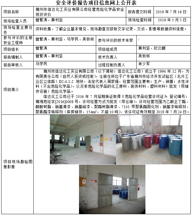 潮州市信达化工实业有限公司经营危险化学品安全现状评价