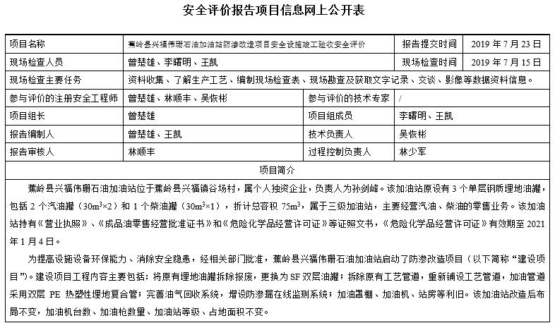 蕉岭县兴福伟珊石油加油站防渗改造项目安全设施竣工验收安全评价