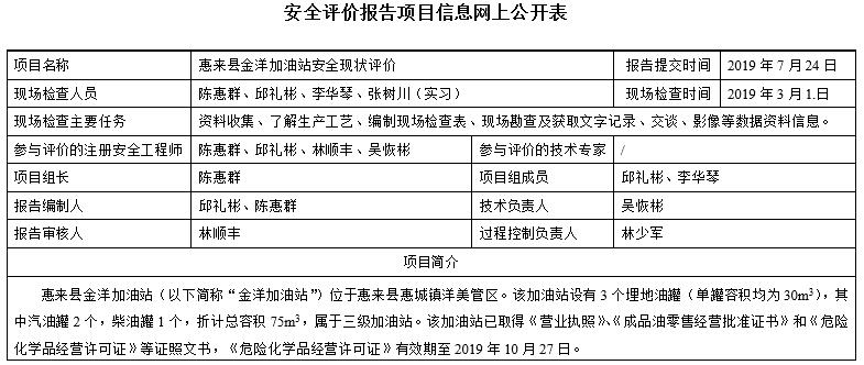 惠来县金洋加油站安全现状评价