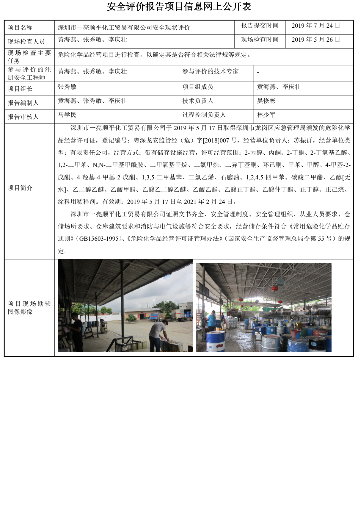 深圳市一亮顺平化工贸易有限公司安全现状评价