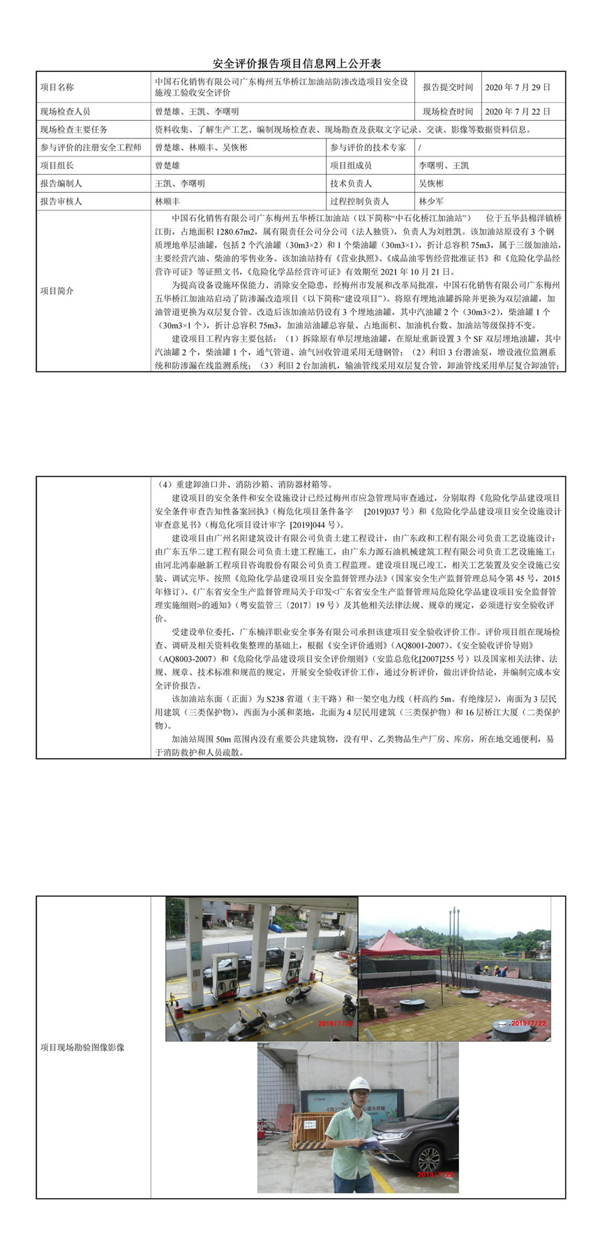 中国石化销售有限公司广东梅州五华桥江加油站防渗改造项目安全设施竣工验收安全评价