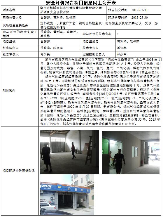 潮州市枫溪区烁东气体经营部经营危险化学品安全现状评价