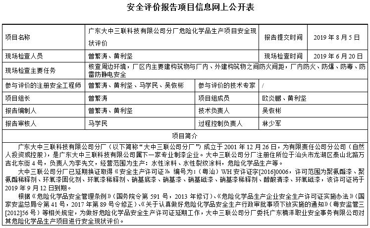 广东大中三联科技有限公司分厂危险化学品生产项目安全现状评价