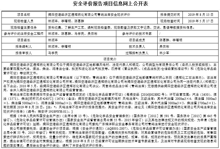揭阳空港经济区通辉燃化有限公司青屿油库安全现状评价