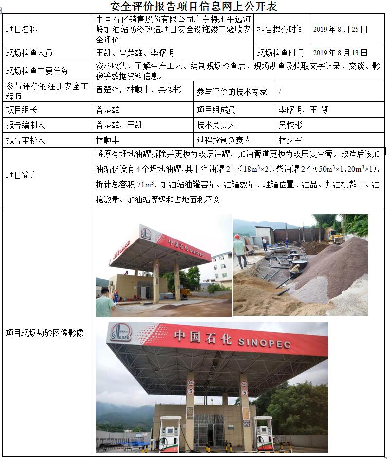 中国石化销售股份有限公司广东梅州平远河岭加油站防渗改造项目安全设施竣工验收安全评价