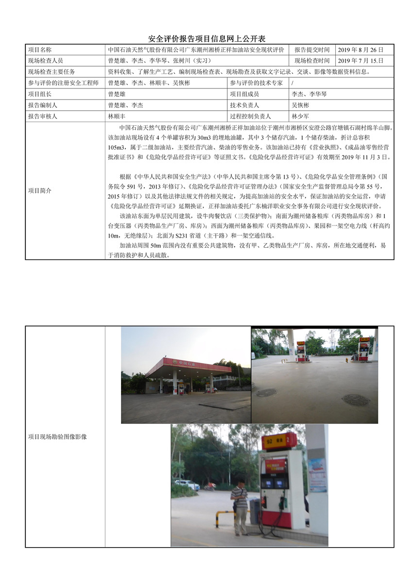 中国石油天然气股份有限公司广东潮州湘桥正祥加油站安全现状评价