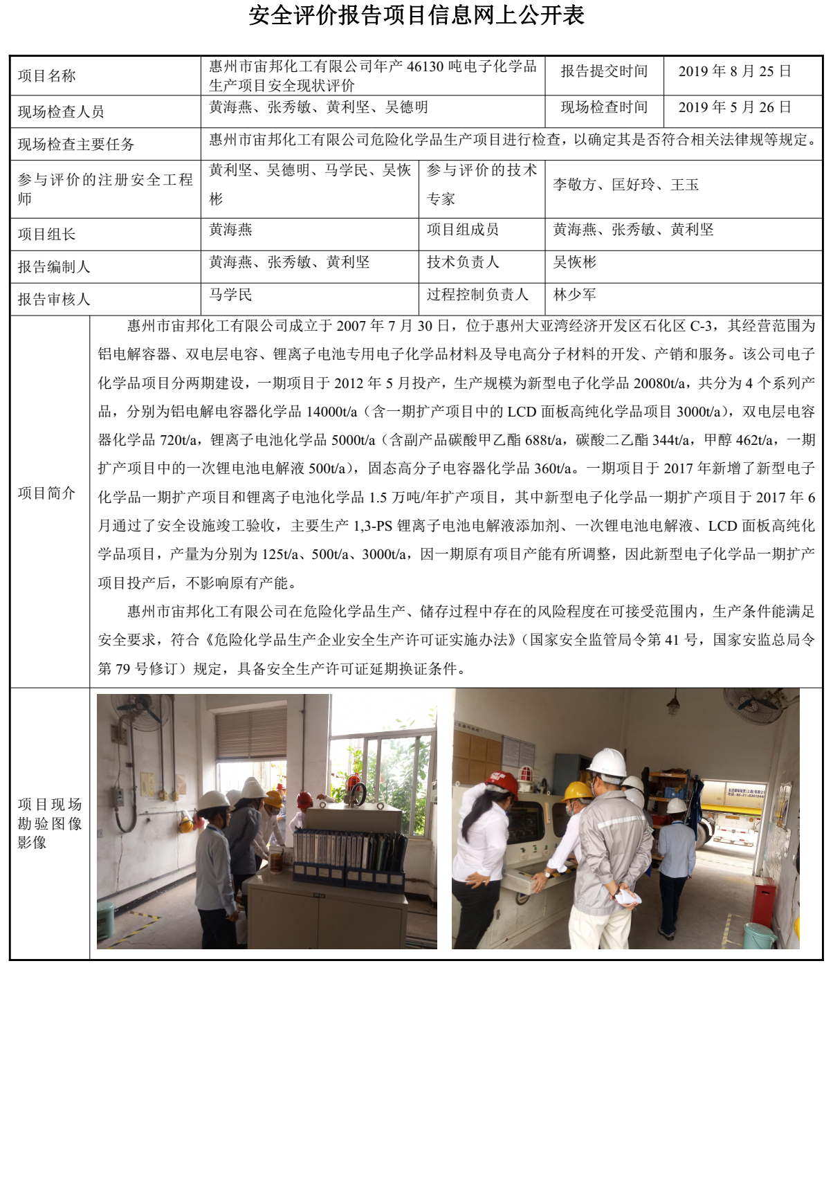 惠州市宙邦化工有限公司年产46130吨电子化学品生产项目安全现状评价