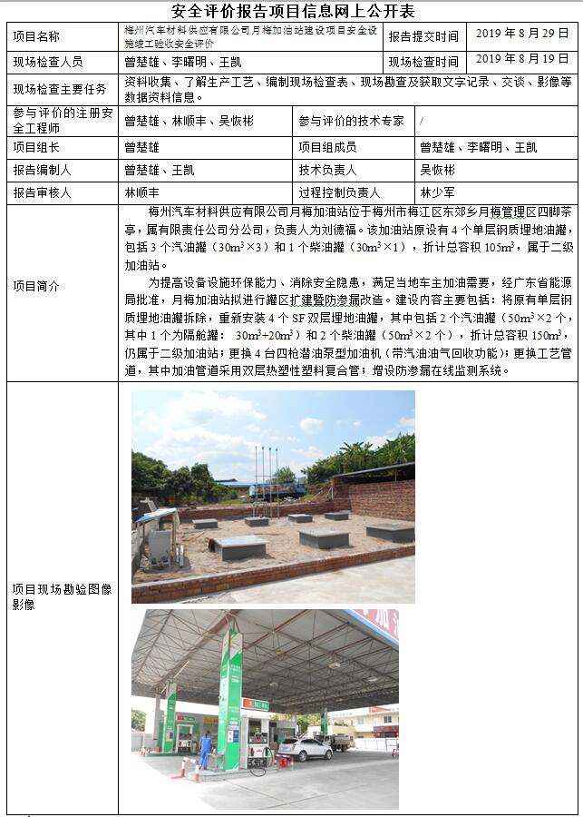 梅州汽车材料供应有限公司月梅加油站建设项目安全设施竣工验收安全评价