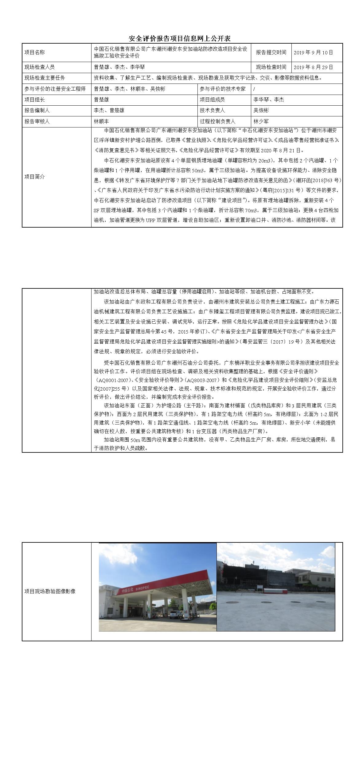 中国石化销售有限公司广东潮州潮安东安加油站防渗改造项目安全设施竣工验收安全评价