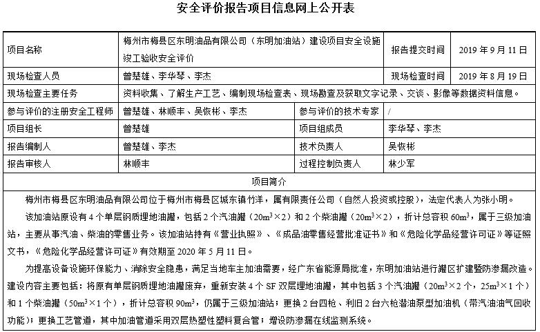梅州市梅县区东明油品有限公司(东明加油站)建设项目安全设施竣工验收安全评价