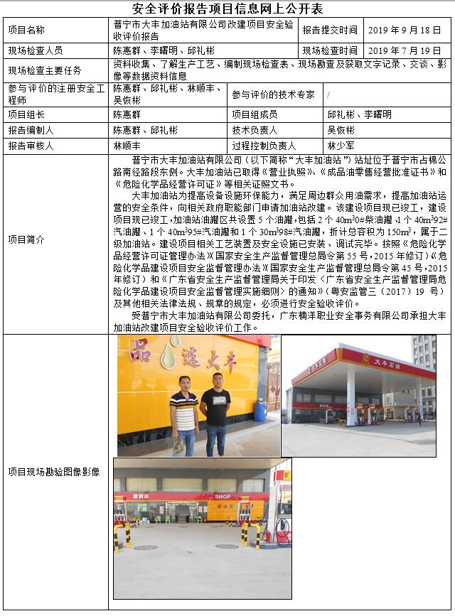 普宁市大丰加油站有限公司加油站改建项目竣工验收安全评价