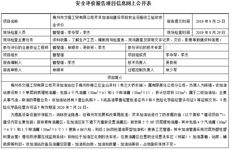 梅州市文强工贸有限公司芹洋加油站建设项目安全设施竣工验收安全评价