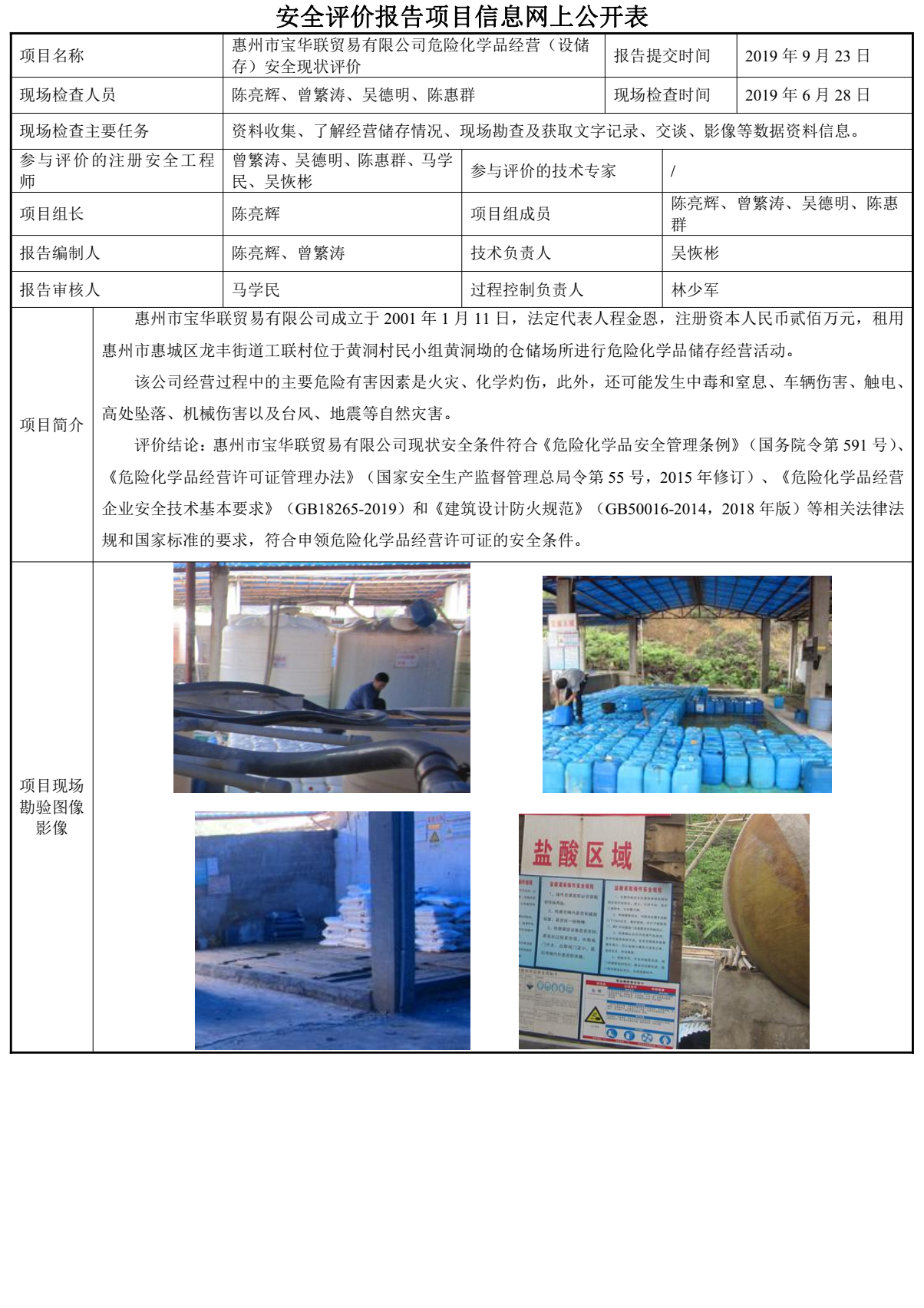 惠州市宝华联贸易有限公司经营(设储存)安全现状评价