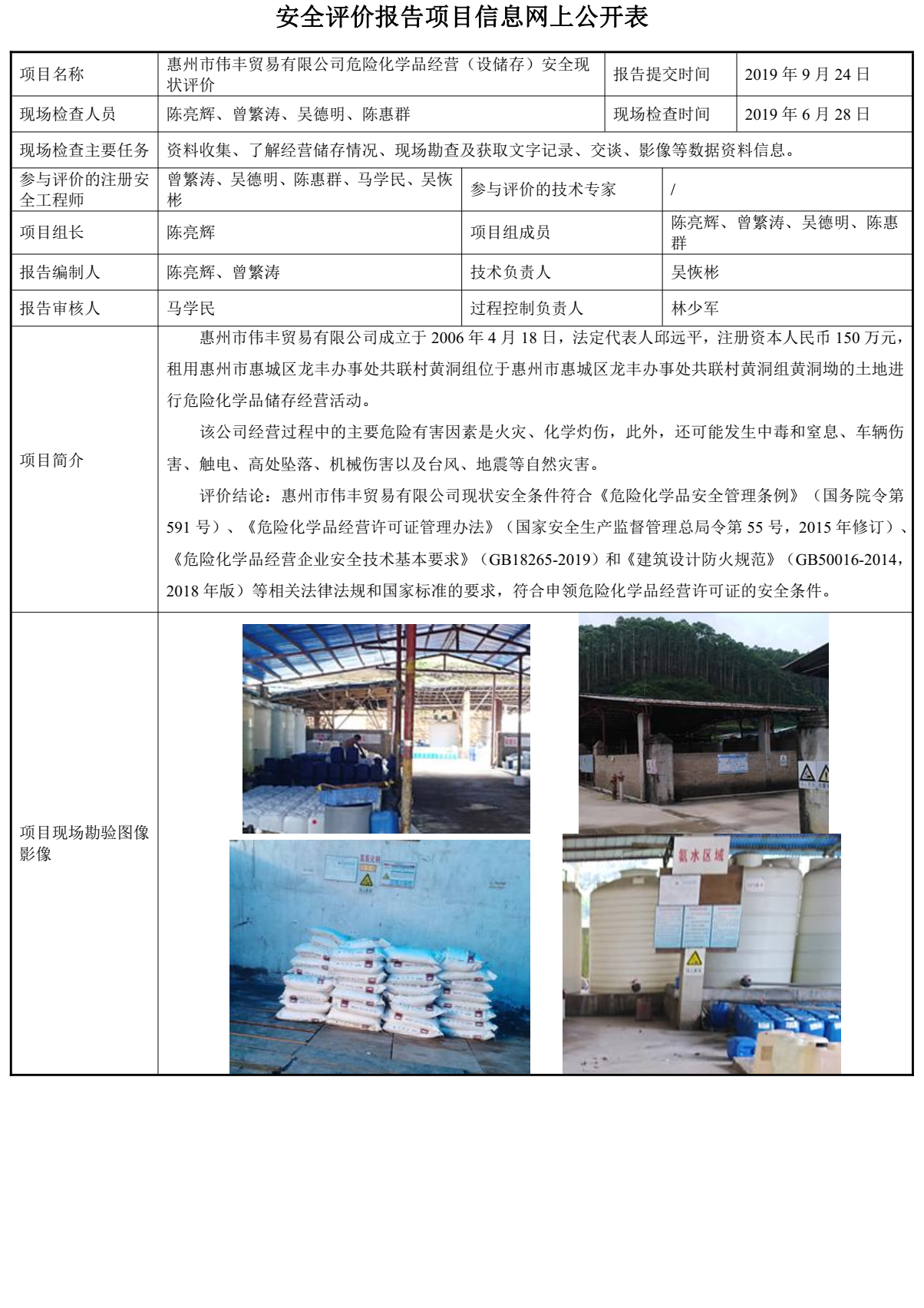 惠州市伟丰贸易有限公司经营(设储存)安全现状评价