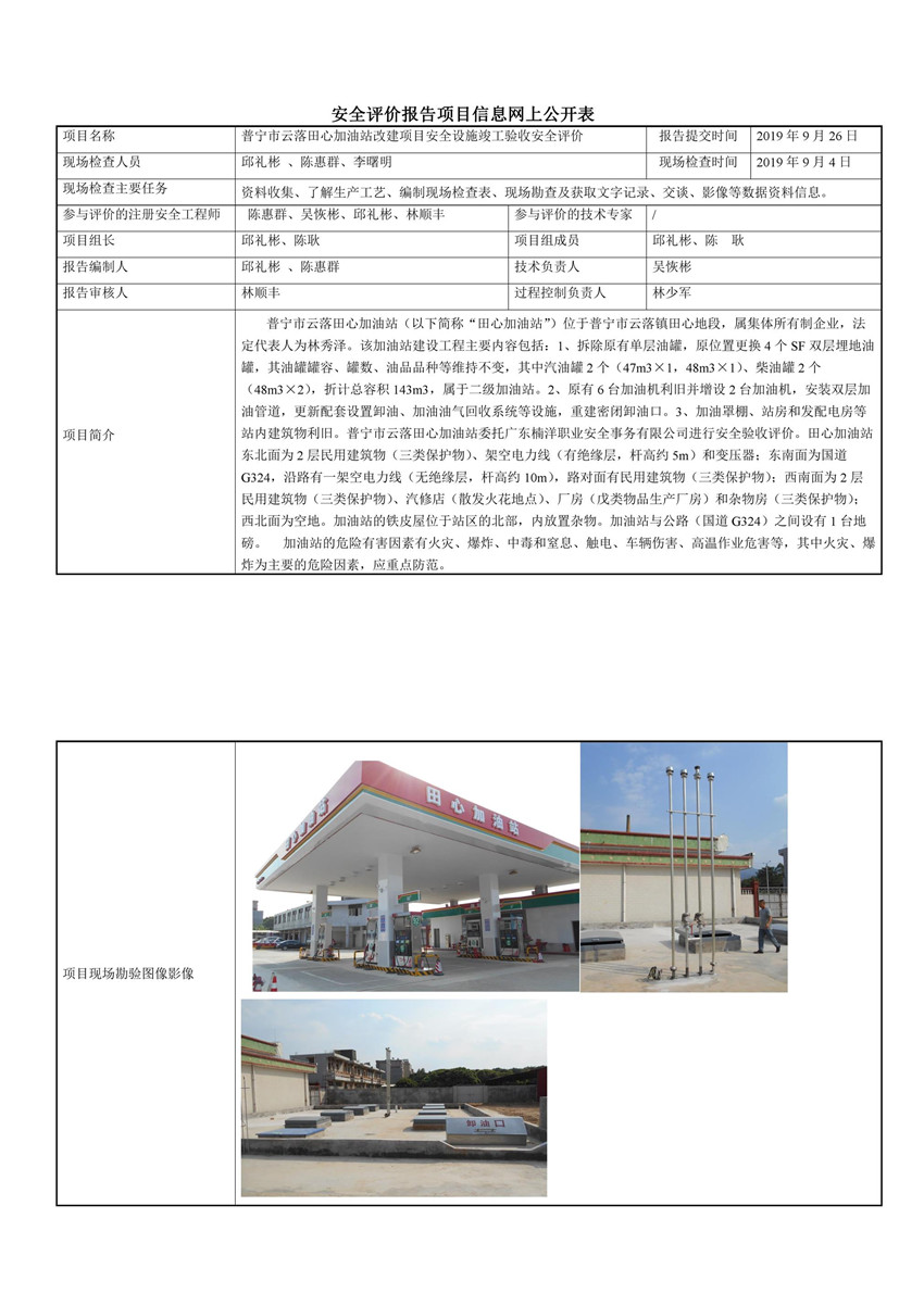 普宁市云落田心加油站改建项目安全设施竣工验收安全评价