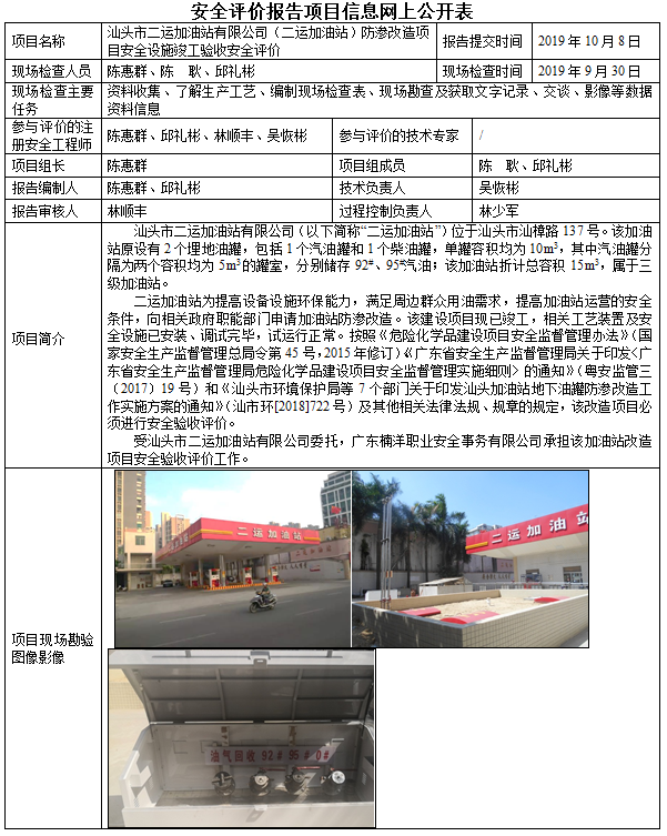 汕头市二运加油站有限公司(二运加油站)防渗改造项目安全设施竣工验收安全评价