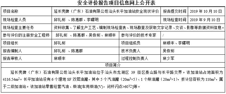 延长壳牌(广东)石油有限公司汕头长平加油站安全现状评价