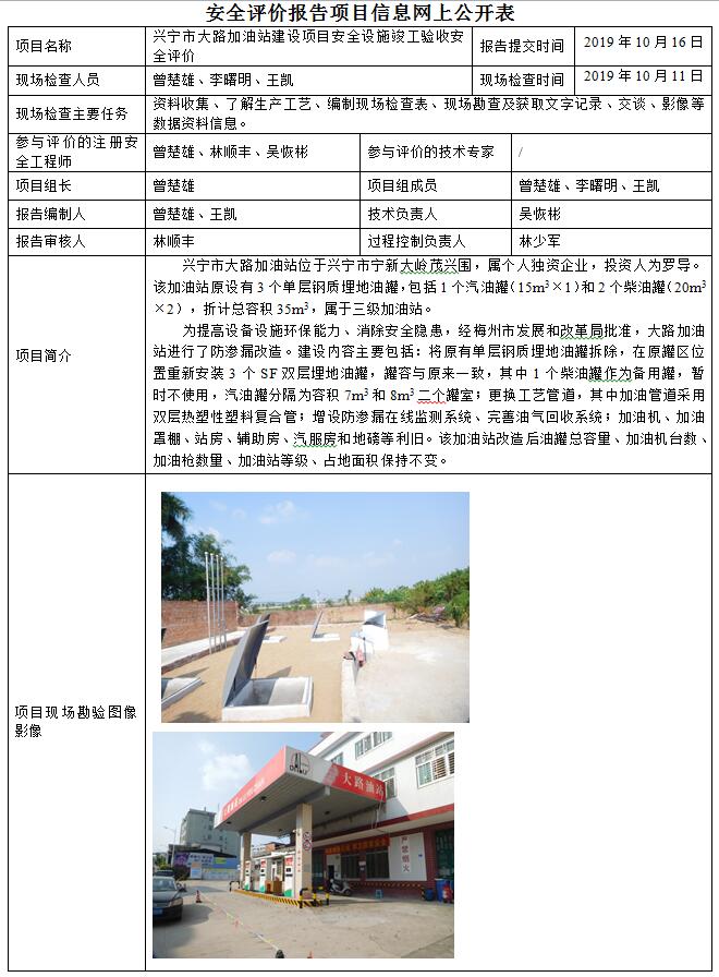 兴宁市大路加油站建设项目安全设施竣工验收安全评价