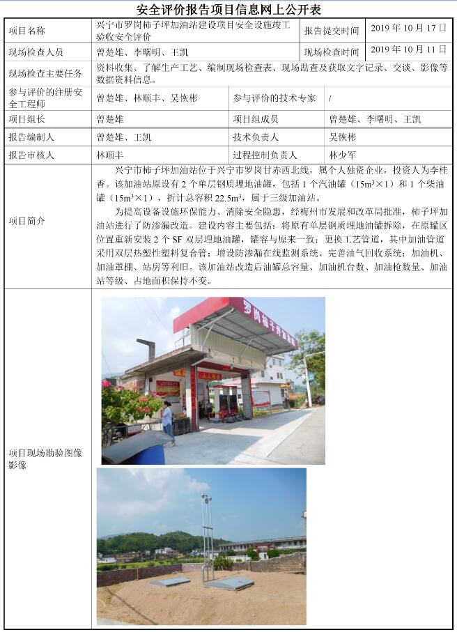 兴宁市罗岗柿子坪加油站建设项目安全设施竣工验收安全评价