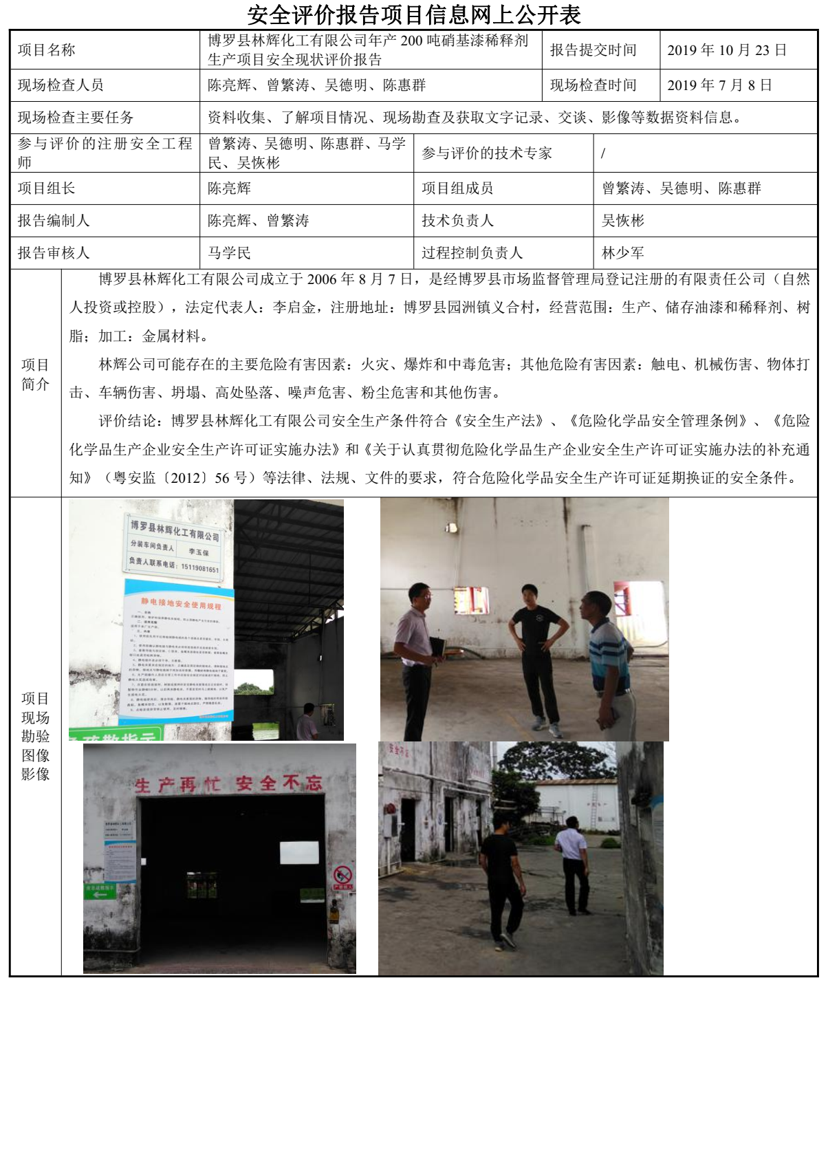 博罗县林辉化工有限公司年产200吨硝基漆稀释剂生产项目安全现状评价