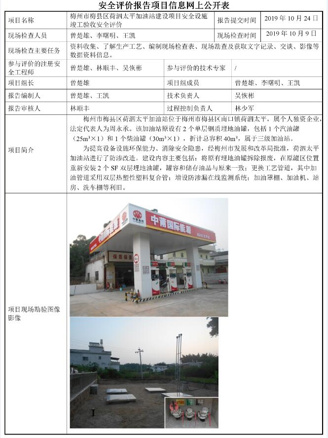 梅州市梅县区荷泗太平加油站建设项目安全设施竣工验收安全评价