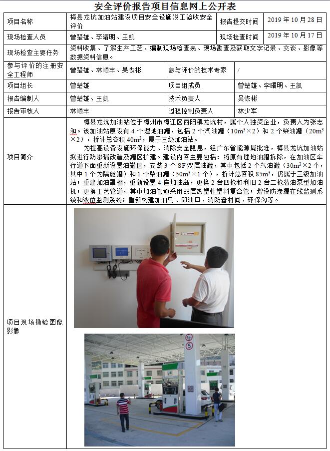 梅县龙坑加油站建设项目安全设施竣工验收安全评价