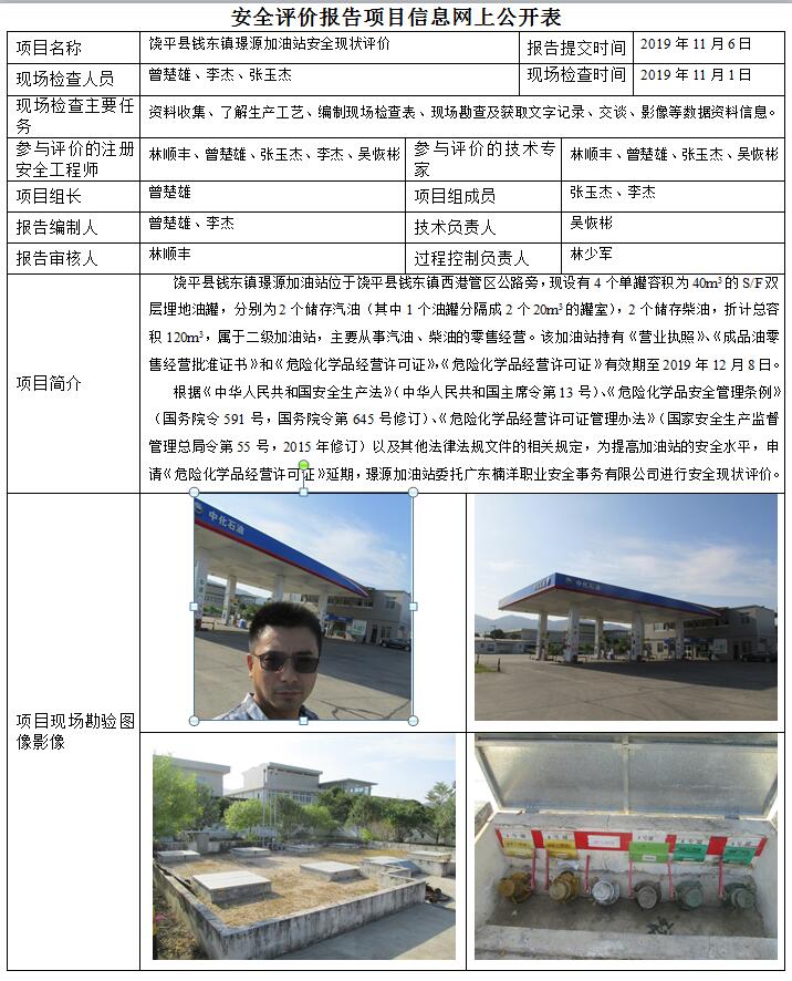 饶平县钱东镇璟源加油站安全现状评价