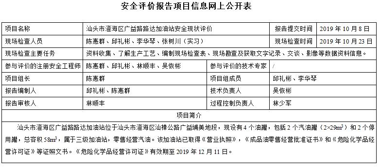 中国石化销售有限公司广东汕头狮岭加油站防渗改造项目安全设施竣工验收安全评价
