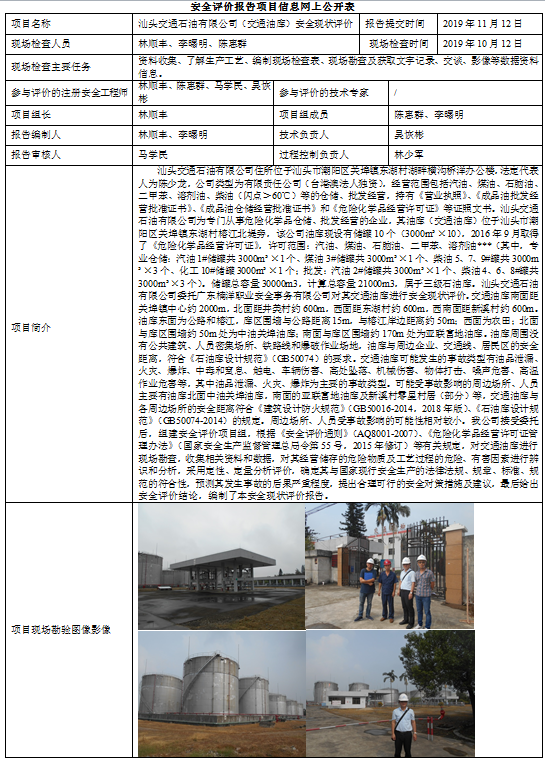 汕头交通石油有限公司(交通油库)安全现状评价